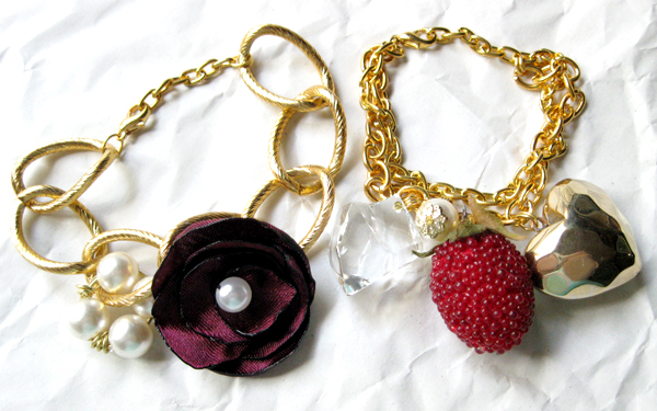 the burgundy wine bracelet, and the mulberry mulberry bracelet which miraculously, i could remake after more than a year!