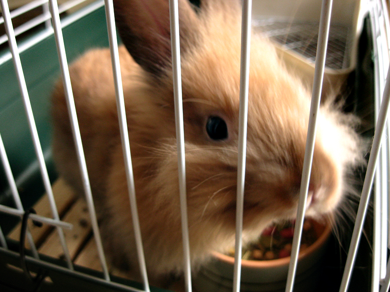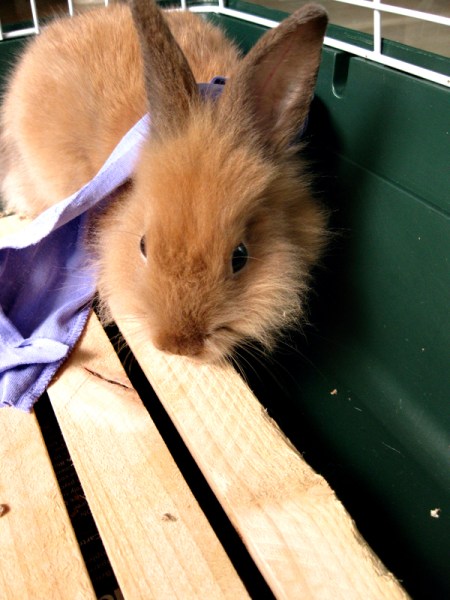 i’ve got tons of scrap fabrics lying around so since it’s considered rabbit-safe, i thought i’d give him a piece to keep amused. at first we played tug of war, then i put it on his head covering his eyes and he didn’t quite bother… then he went around with it hung across his neck like a shawl…