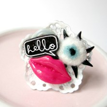 don’t you think the white filigree bases look like good old doily paper? the eyeball and sunny side up were carefully needle-felted by me! :)