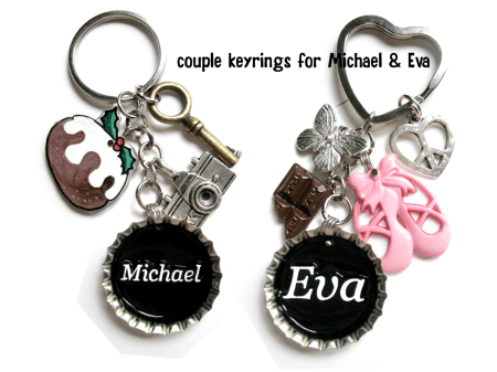 his has got a hand drawn pudding charm! font used for this pair is Georgia Italics.