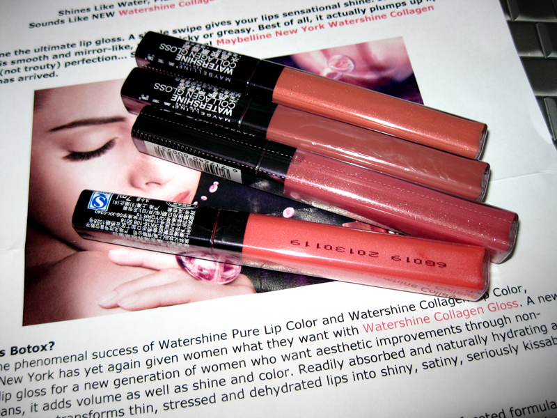 4 tubes of Maybelline’s new Watershine Collagen Gloss. will try it out and let you girls know if i like them, I’m pretty sure I will!