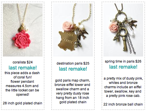 I’m still updating, re-organising and adding new pieces to the store so keep checking back! Expect to see more new necklaces and new earrings (finally) hopefully by the end of this week!