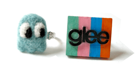 a teal pacman ring and a color block glee ring for Safiah :)