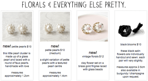 Oscar, Patrick and Mr Bump! These are all hand drawn and Patrick is a tiny 1.7cm tall! He’s uber cute, you have to see for yourself! For those of you who lean more towards girly sophistication, then you’ll love these new additions! There are also a couple that i only have one pair of… think vintage!