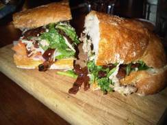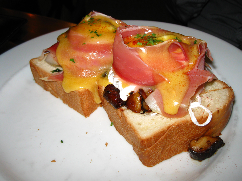 mimi had the vietnamese pulled pork sandwich and jones had the european breakfast of eggs benedict.