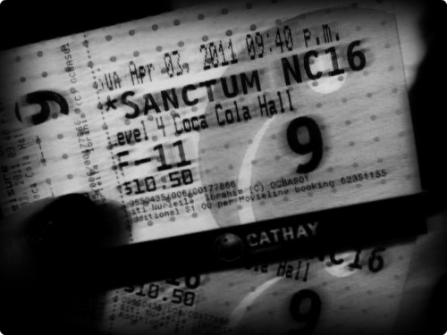 okay back to sunday, i thought it was gonna be same old… sleep in, hopefully wake up without a hangover, have lunch, bum around, go to church… well, not until i suddenly had plans! went down to town after mass to meet ed for dinns.. and apparently they already bought tickets to catch Sanctum!