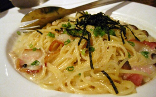 pasta at a japanese restaurant? i had my doubts at first but boy was i proven wrong. the sauce was creamy yet so very light. it is unlike your typical carbona pasta that causes your eating speed to slow halfway, you just want more and more with this one! and the texture of the spaghetti was simply perfect. sprinkled with seaweed shreds in pure japanese fashion! i’m definitely going back for seconds, and this time i want one to myself! :P