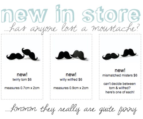 ( see these + more new ear studs in store now! )ps : don’t forget to pick up the matching funny moustache ring!