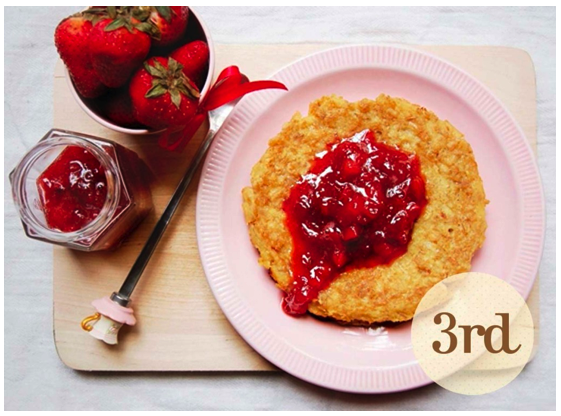 these are oatmeal pancakes with strawberry sauce that took 3rd place… oatmeal pancakes… i can’t quite imagine how they’d taste but i might just have a go at it sometime! *tummy rumbles