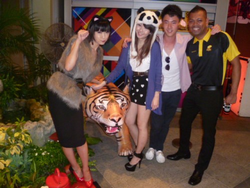 nicole came later… she was a zoo keeper! i don’t know what Q was tho… hahaha! my panda head got stolen from my head half the night… *pouts