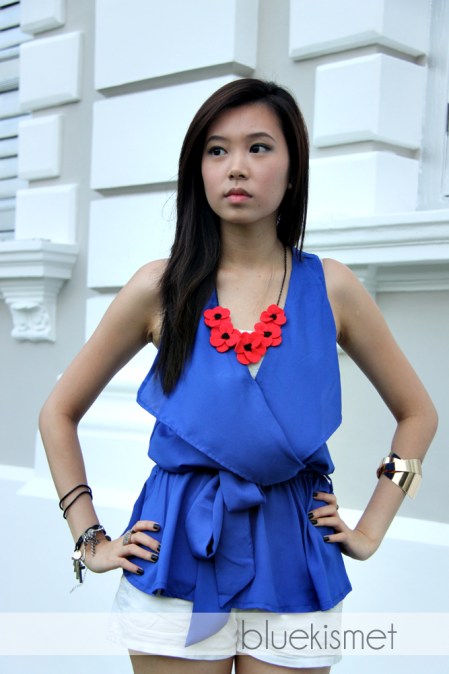 as worn by bluekismet’s model, this bouquet of “blood pansies” is but a single bouquet amongst other floral pieces out of the Perpetual Spring Collection on Jeanine Gabrielle.