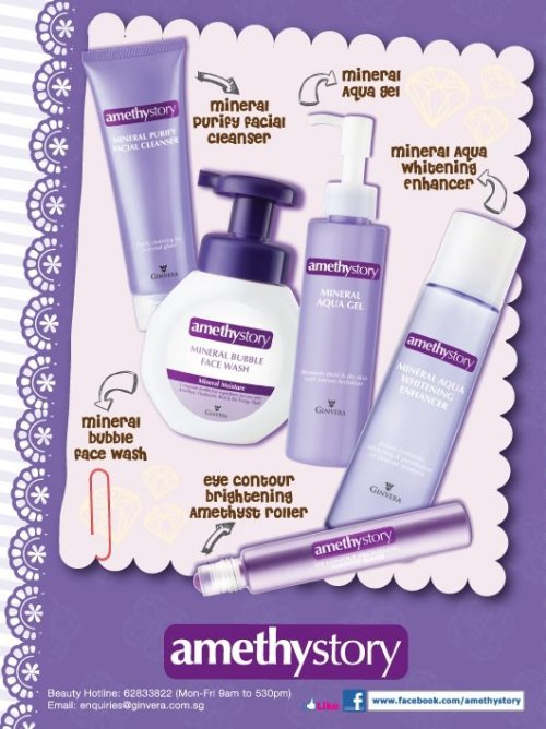 Mineral Aqua Gel (Star Product) $24.90 Mineral Bubble Face Wash $14.90 Mineral Purify Facial Cleanser $8.90 Mineral Aqua Whitening Enhancer $19.90 Eye Countour Brightening Amethyst Roller $16.90