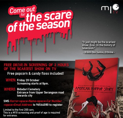 Love horror movies? Got a car? How about a free flow of pop corn and cotton candy? Singtel mio TV invites YOU to indulge in a night of terror. This is THE ultimate Halloween experience.