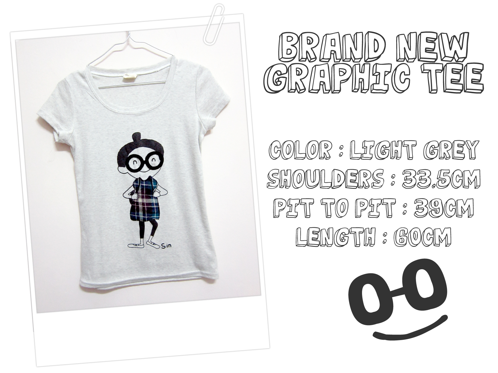 I got this for almost $30 some time ago, washed it once but never got down to wearing it cos I don’t wear tees as much these days. The material is really soft, very comfy and the girl is just adorable. Her dress and spectacles are sewn on. Love the plaid dress! This would look really cute with a grey sweater/cardigan and denim shorts. :)
