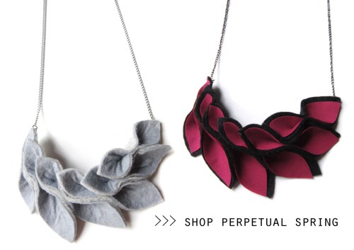 These are made with a mix of felt and fabric. At the moment there are 4 colors available for purchase, but I’m constantly on the search for new materials so you never know what’s gonna show up next!