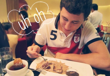 Robin had a little problem finishing his share. Too much chocolate for the chocolate kid?