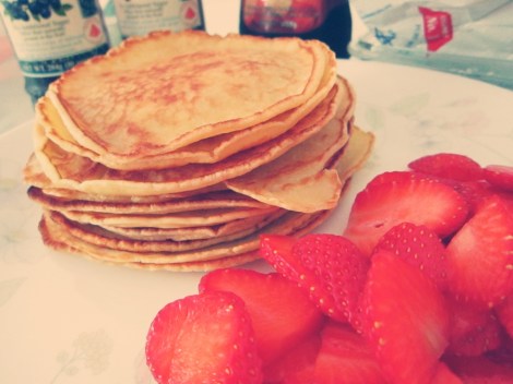 Don’t think I have to go into how to make them, right? I don’t know if it was my choice of flour that caused them to not be fluffy but I did follow the recipe, I did add about two tablespoons of honey to the mix though, gives it a subtle taste of honey! Best enjoyed with tons of butter and soaked in pancake/maple syrup. Whip cream is optional but it is a very welcome addition, especially coupled with fresh strawberries. It’s a real treat! These pancakes keep well too, I kept about 4 of them and ate them two days later and they were still yummy after being warmed up.