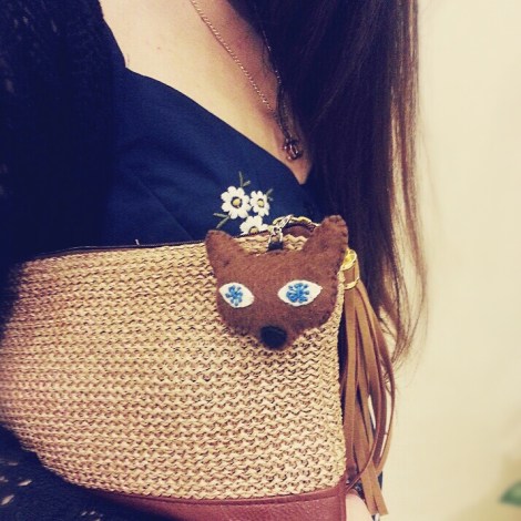 Straw clutch from one of my online hauls from Cotton On, Rubi. Believe it or not I was so lucky to have snagged it for just $5! The blue eyed fox bag charm is handmade by me. Totally blends in with the clutch like they were made for each other.