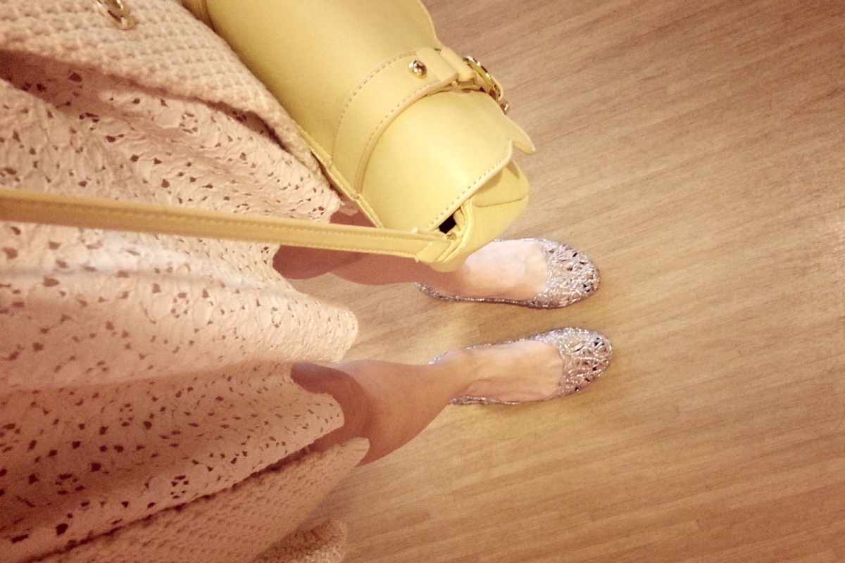 Scallop edge satchel – ASOS // Lace dress – Club Couture // Knit Cardigan – Espirit // Melissa-inspired jelly flats – Vivian & Sean