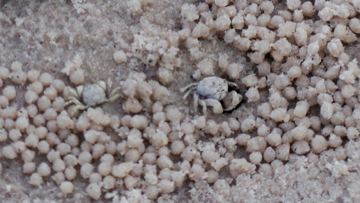 The beach is full of tiny crabs! They scatter from hole to hole so quickly it’s hard to catch.